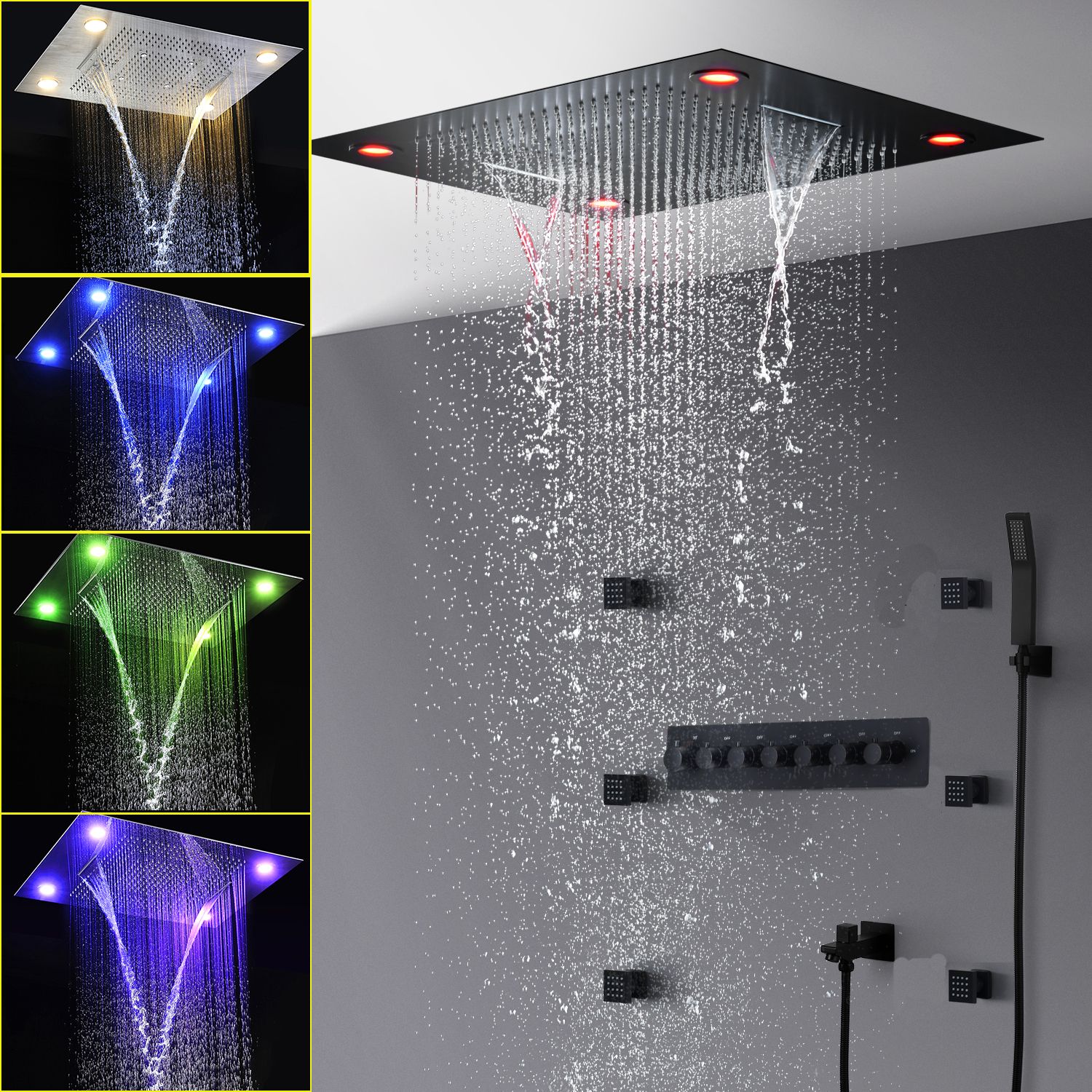 Europe Style Bathroom Accessories Black Shower Head Panel Faucet Set Rainfall Waterfall Ceiling Mounted Thermostatic Mixer Valve Diverter From Jmhm 1 587 94 Dhgate Com